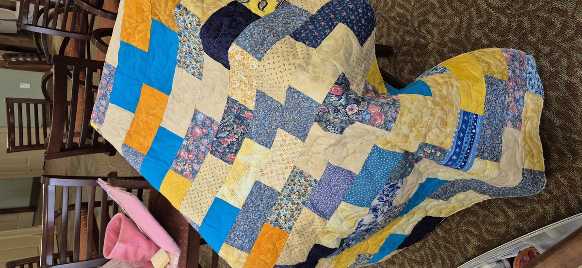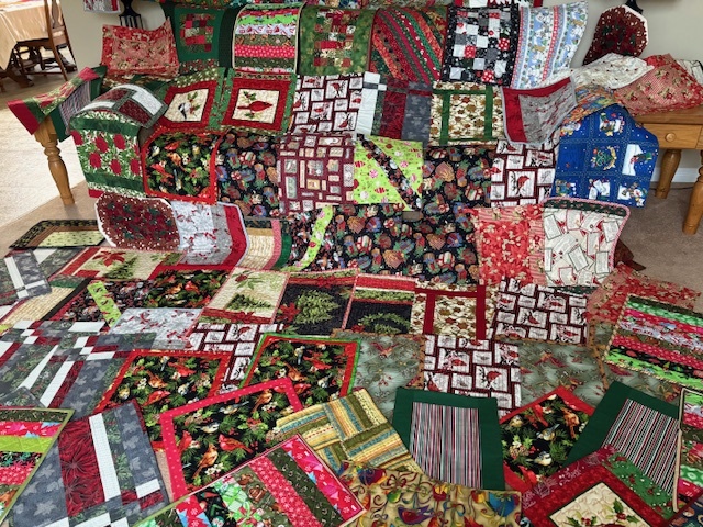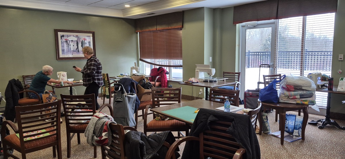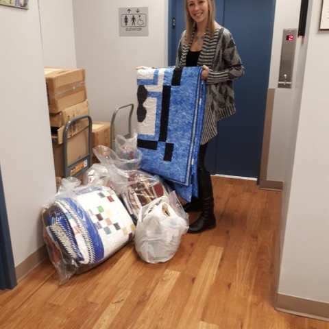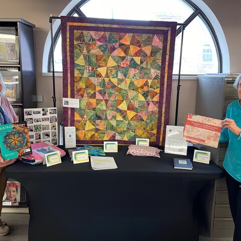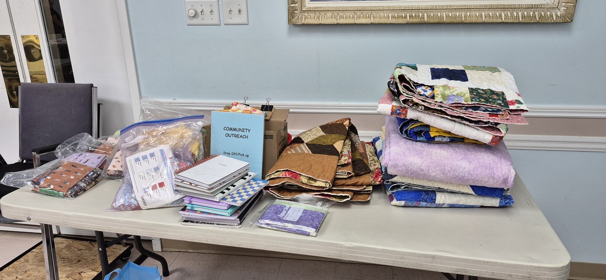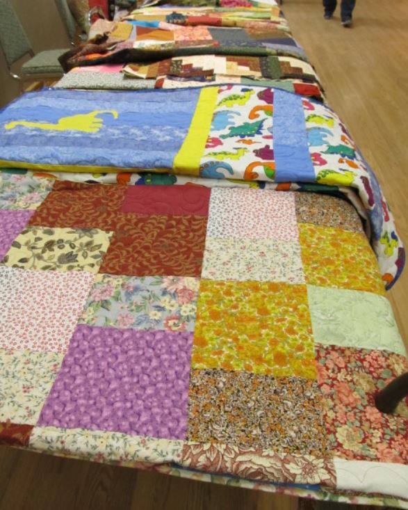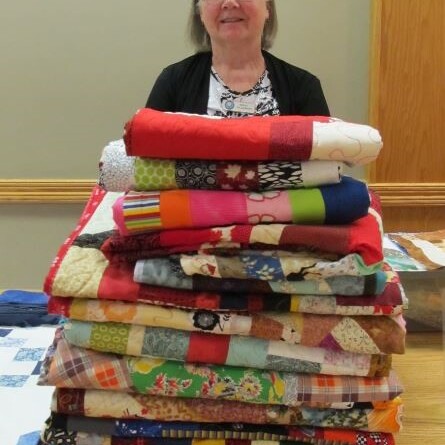 In recent years, DPQG has donated over 100 quilts annually and engaged with our community during emergency situations. During the COVID-19 pandemic, PPE was made for the front line healthcare workers, and special quilts in Ukrainian colors for individuals displaced by the ongoing war were distributed.