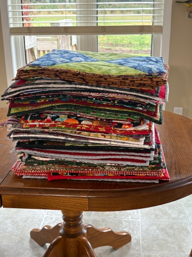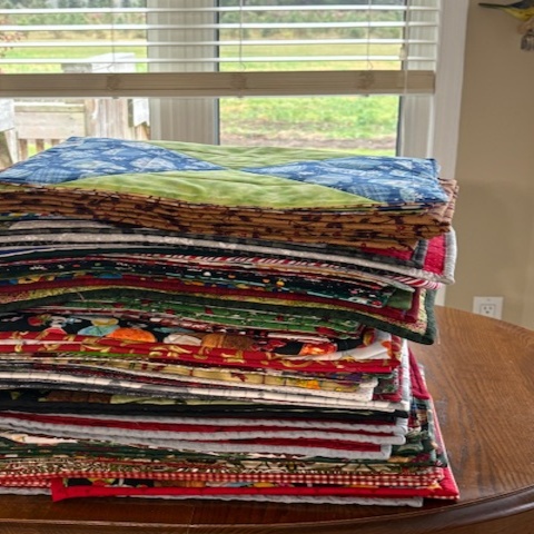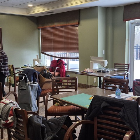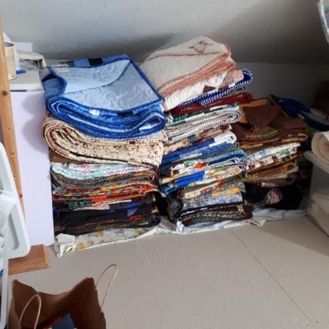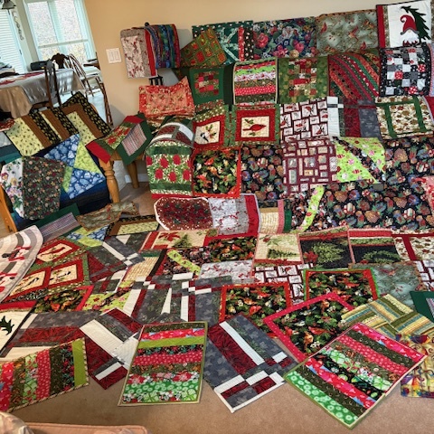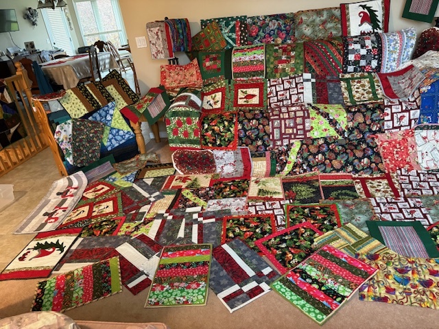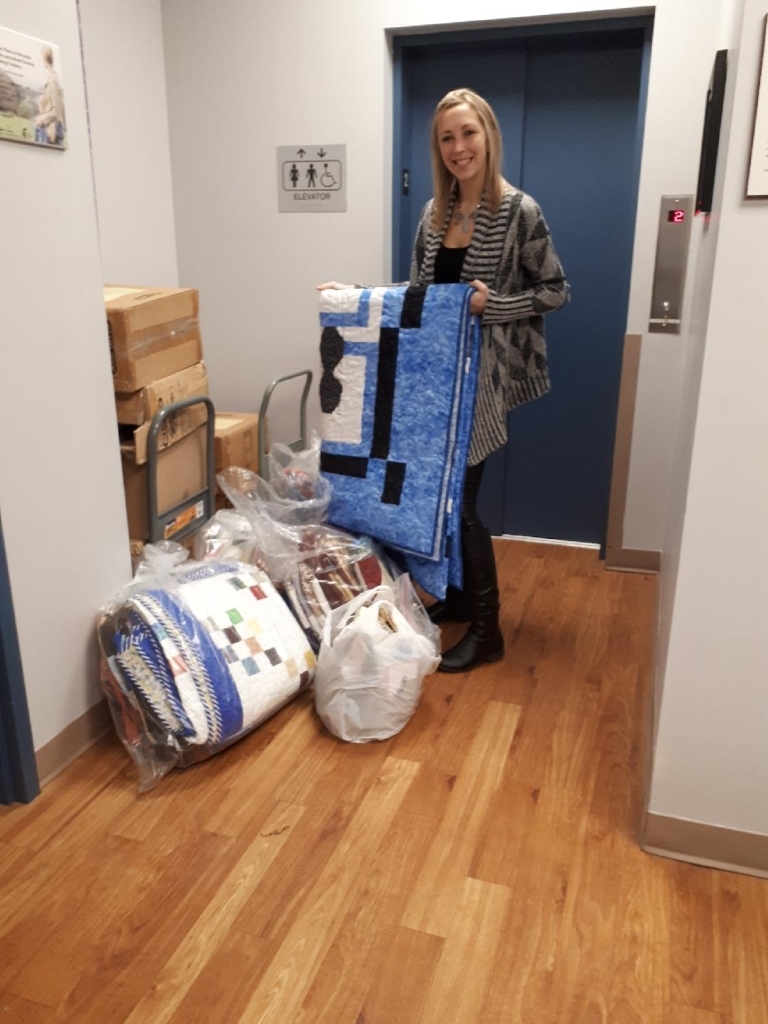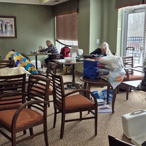 In recent years, DPQG has donated over 100 quilts annually and engaged with our community during emergency situations. During the COVID-19 pandemic, PPE was made for the front line healthcare workers, and special quilts in Ukrainian colors for individuals displaced by the ongoing war were distributed.