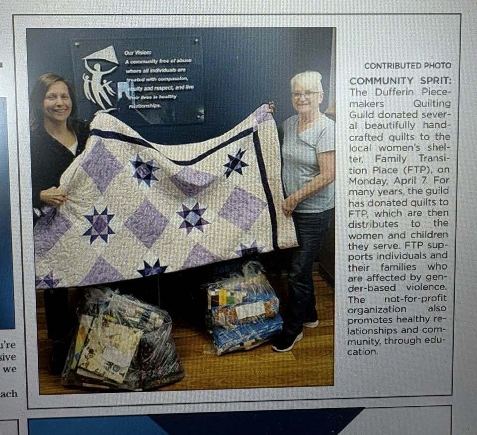 The generous members of the Dufferin Piecemakers donate fabric, supplies, and countless hours of their time to create quilts and other comfort items that benefit various community groups and organizations.